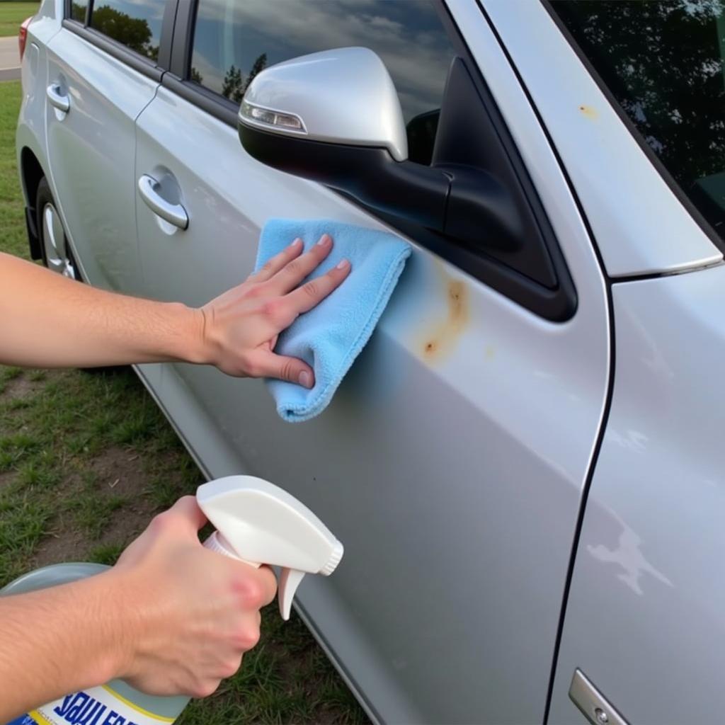 Lưu ý: Nên thử nghiệm xăng zippo hoặc cồn 70 độ trên một vùng nhỏ khuất của xe trước khi sử dụng trên diện rộng để đảm bảo chúng không làm ảnh hưởng đến lớp sơn xe.
