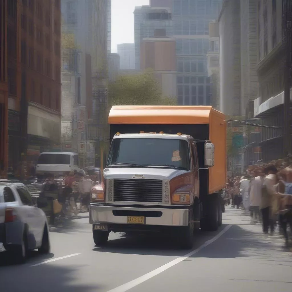 Xe tải nhỏ di chuyển trong khu vực nội thành