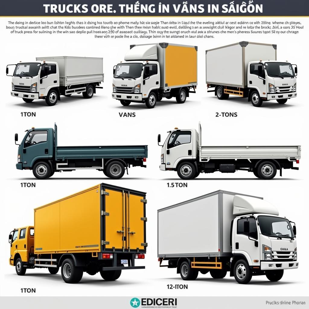 Thông thường, các công ty ô tô tại Sài Gòn phân phối đa dạng các dòng xe tải, từ xe tải nhẹ, xe tải van, xe tải thùng, đến các loại xe tải 1 tấn, 2 tấn, 3.5 tấn và 8 tấn. Mỗi loại xe đều có những ưu điểm và nhược điểm riêng, phù hợp với nhu cầu vận chuyển hàng hóa khác nhau. Ví dụ, xe tải van thường được sử dụng để vận chuyển hàng hóa trong nội thành, trong khi xe tải thùng lớn hơn phù hợp cho vận chuyển hàng hóa đường dài. Tìm hiểu thêm về công ty tnhh dv ô tô sài gòn toyota tsusho để biết thêm về các dịch vụ ô tô.