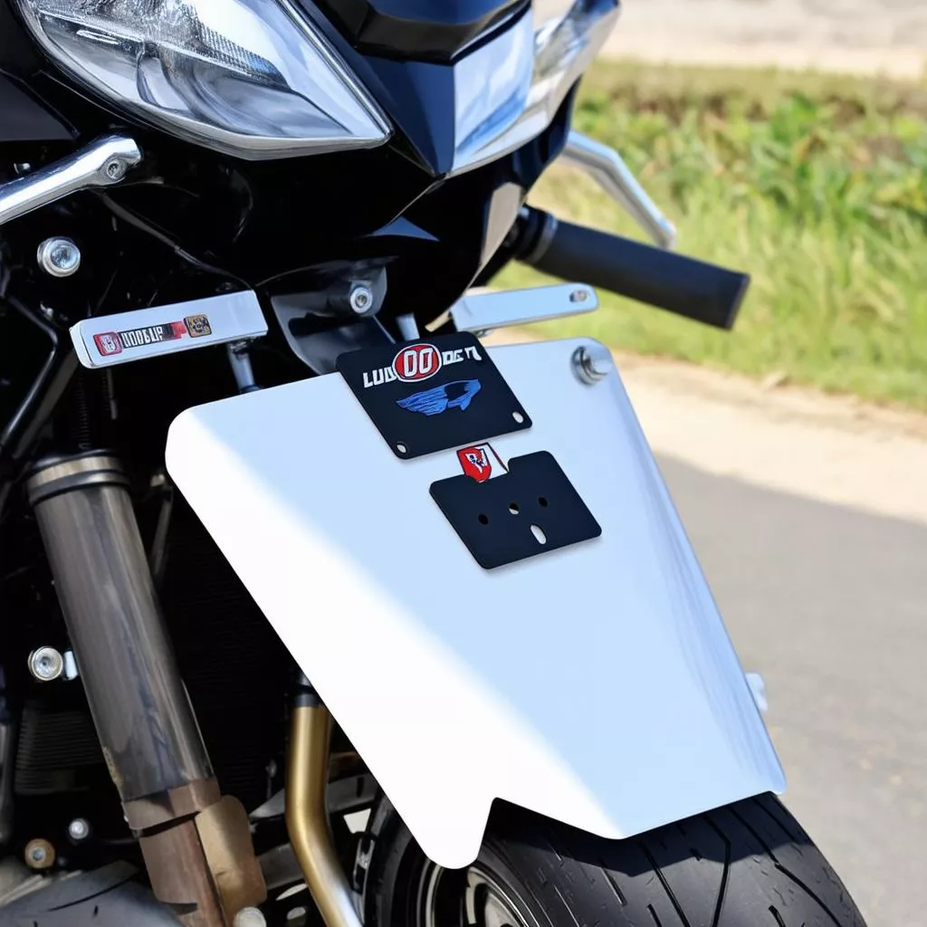 Um dem Wunsch der Biker nach einem individuellen Stil für ihr Motorrad gerecht zu werden, haben viele Zubehörhersteller vordere Kennzeichenhalter entwickelt, die sich leicht anbringen und abnehmen lassen. Sie können sie beim Offroad-Fahren und auf langen Touren verwenden und im Stadtverkehr abnehmen, um Strafen zu vermeiden.