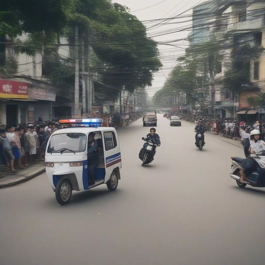 “Wee-ooh! Wee-ooh!” – The siren of a police car wails through the streets of Hanoi. An Isuzu truck from Long Giang trucking company, carrying goods on Nguyen Van Linh Street, Long Bien District, is suddenly stopped. A group of robbers, having just committed a crime at a Vietcombank on Cau Giay Street, are trying to escape. The 113 police force quickly arrives, chasing the criminals through the streets of Hanoi.