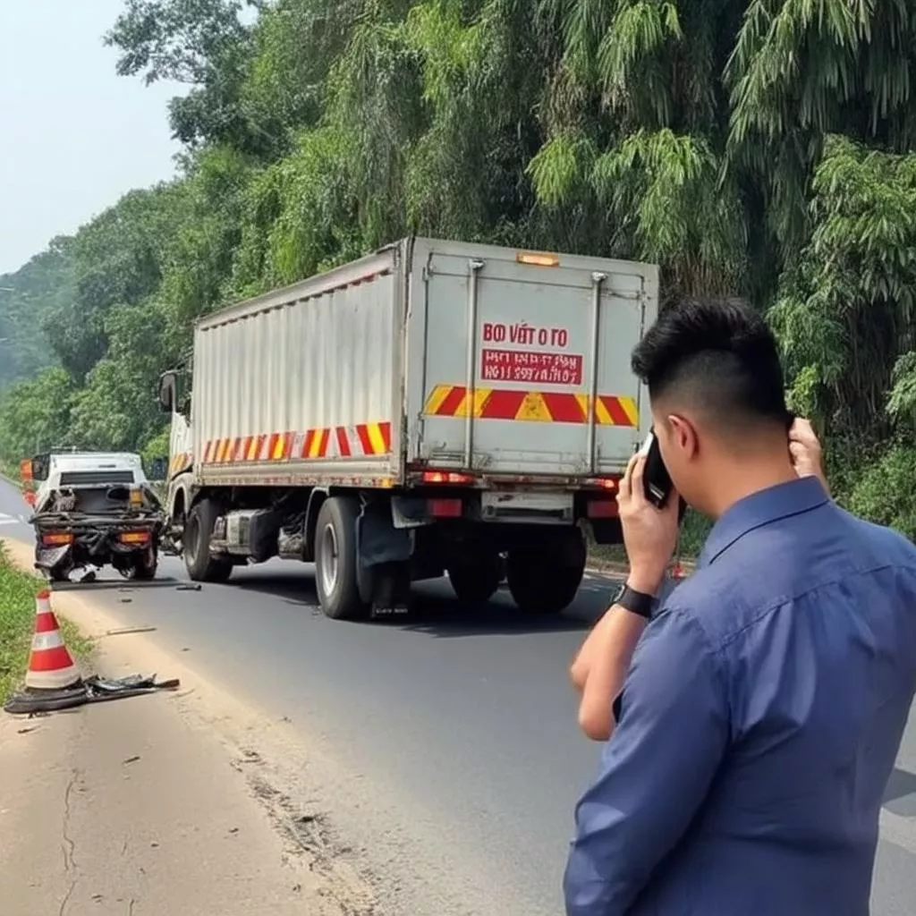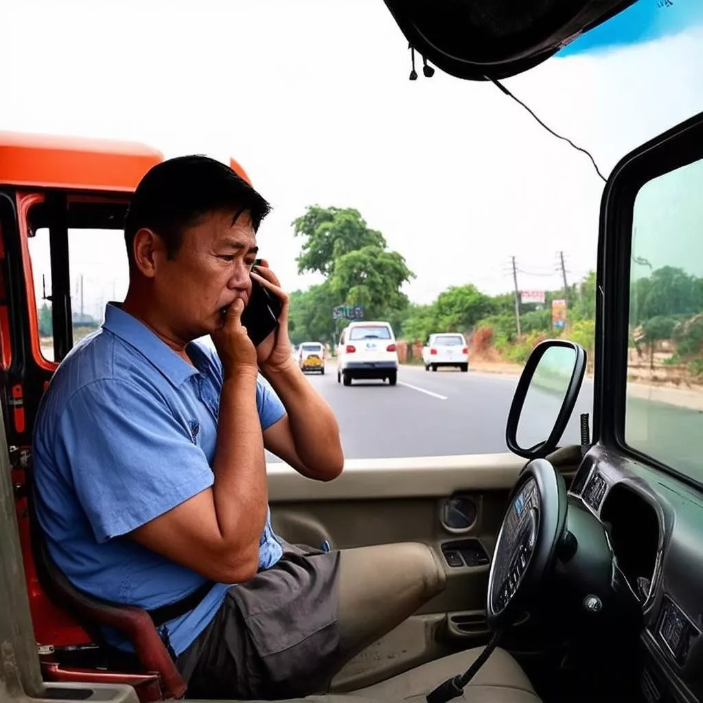 Chauffeur routier appelant l'assistance Bảo Việt