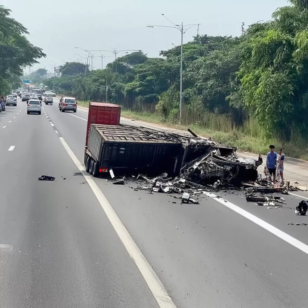 ハノイ高速道路でのトラック横転事故ハノイ高速道路で横転したトラック