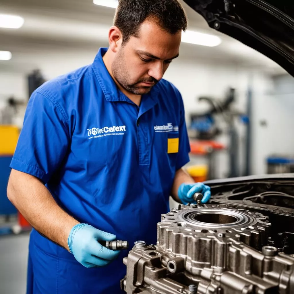 トランスミッションを点検する技術者
