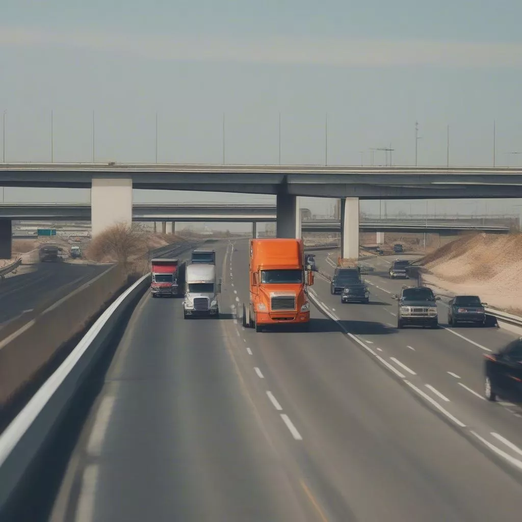 Xe tải chạy trên đường cao tốc