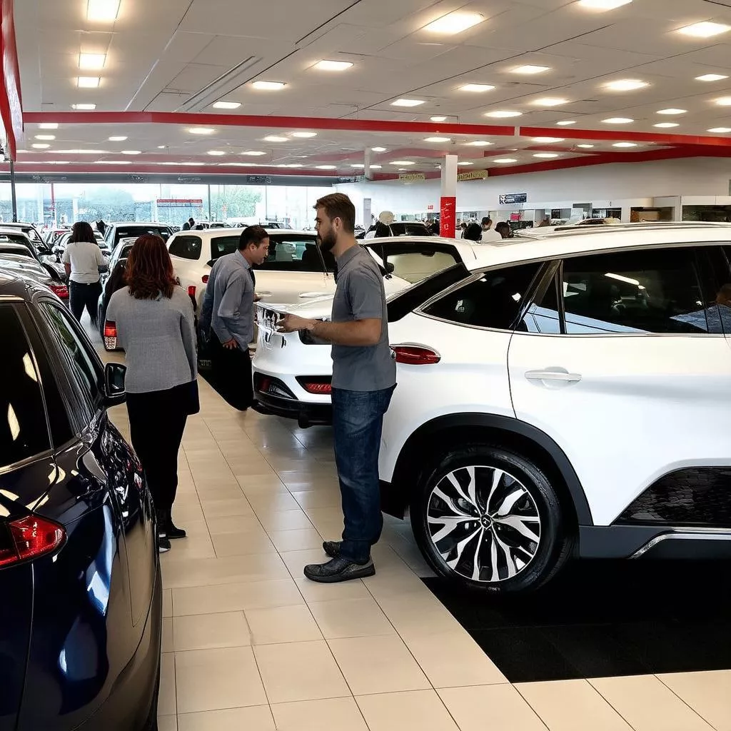 Đại lý xe hơi đông người