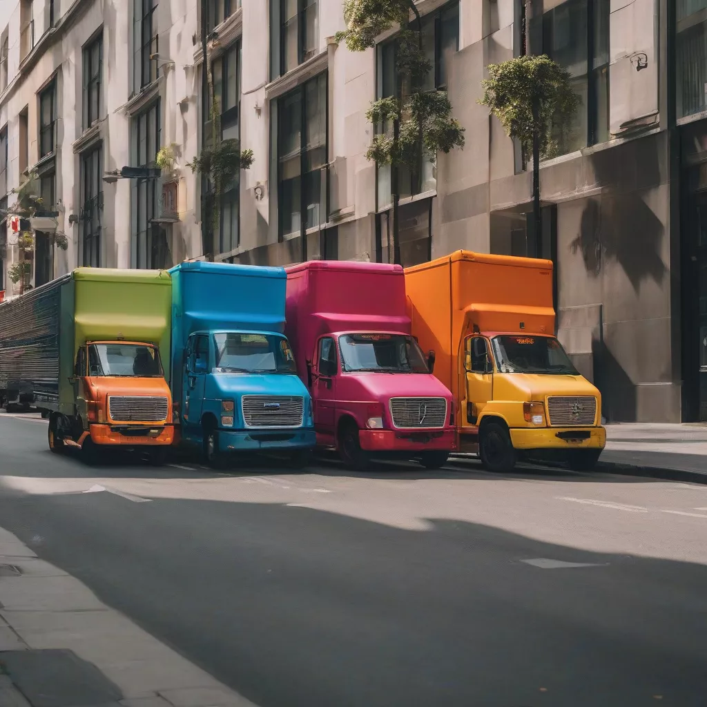 Camiões coloridos e estilosos a transportar mercadorias