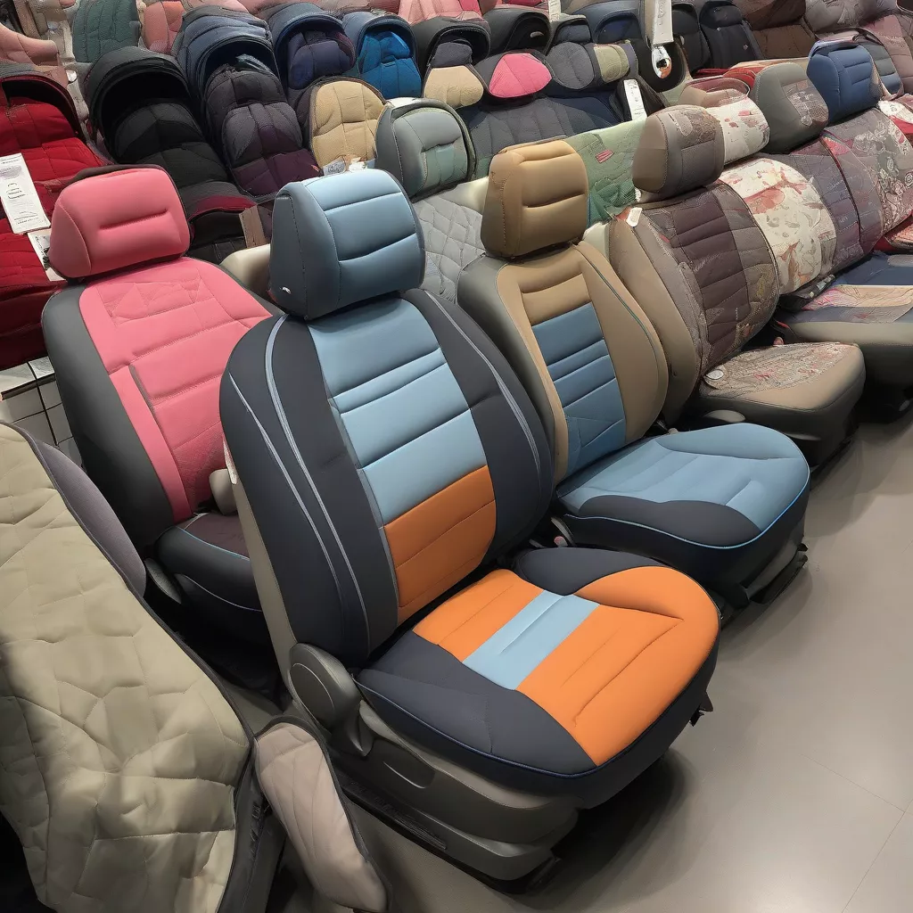 目前市场上有多种类型的汽车座椅套,从高级皮革、人造革、绒布到帆布,款式、颜色和价格各不相同。