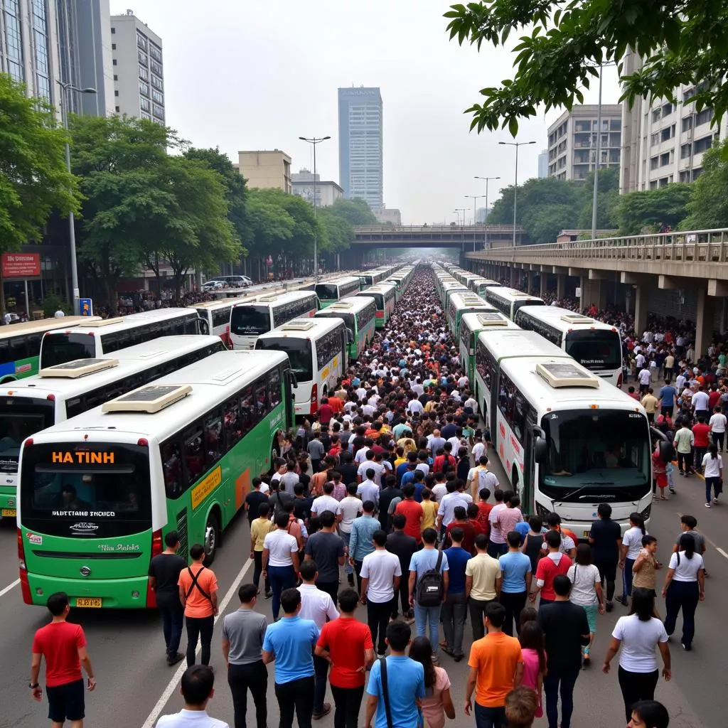 Hà Tĩnh客车在车站接载乘客