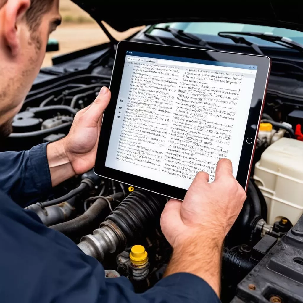 卡车维修技师正在使用专业软件