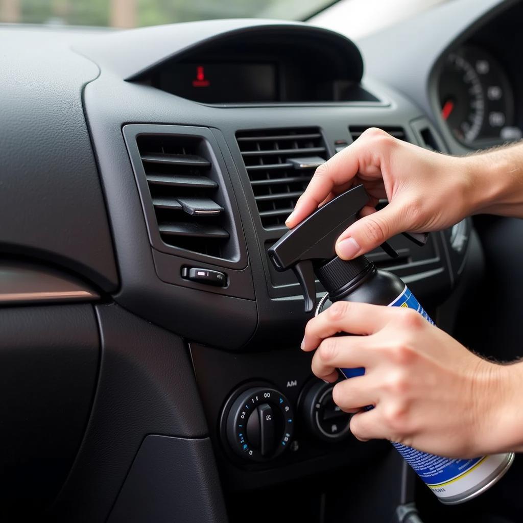 使用清洗剂喷雾清洗汽车空调
